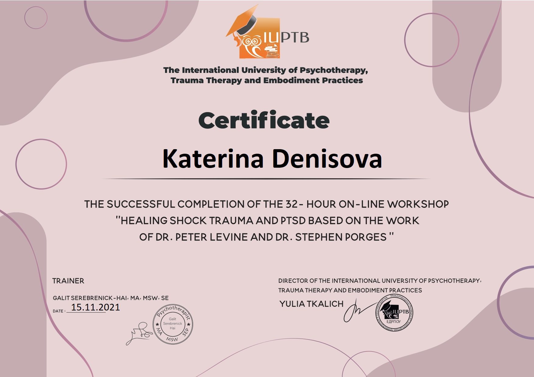 С 2012 года пошла обучаться в направлении работы с телом (медицинский массаж Вингейт, остеопатический подход, послеродовое пеленание для женщин). С тех пор постоянно обучаюсь и развиваюсь.